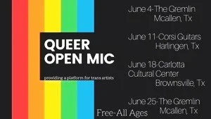 Queer Open Mic @ Carlotta Cultural Centere (Brownsville, TX) - June 18, 2019, at 7 PM CST.